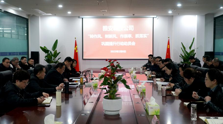 為激發(fā)城投公司黨員干部在“一區(qū)一地引領(lǐng)、四化同步推進(jìn)、雅州新區(qū)示范”上走在前作表率,加快建設(shè)川藏鐵路第一城、綠色發(fā)展示范市作出城投貢獻(xiàn),以優(yōu)異成績(jī)完成市委、市政府交辦的各項(xiàng)任務(wù),城投公司貫徹落實(shí)市紀(jì)委五屆三次全會(huì)精神,于2月8日召開“轉(zhuǎn)作風(fēng)、樹新風(fēng)、作表率、抓落實(shí)”鞏固提升行動(dòng)動(dòng)員部署會(huì)。