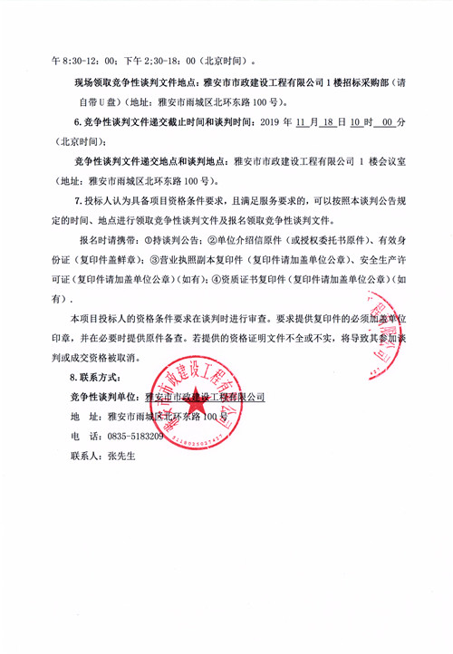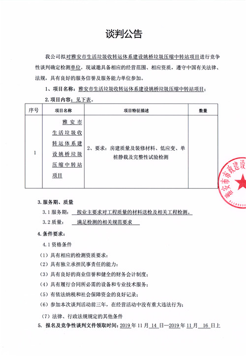 雅安市生活垃圾轉運體系建設姚橋垃圾壓縮中轉站項目競爭性談判公告