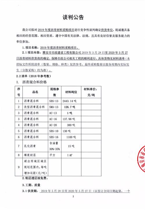 市政公司2019年度瀝青材料采購(gòu)項(xiàng)目競(jìng)爭(zhēng)性談判公告