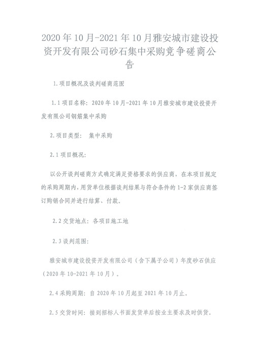 2020年10月-2021年10月雅安城市建設投資開發(fā)有限公司砂石集中采購競爭磋商公告