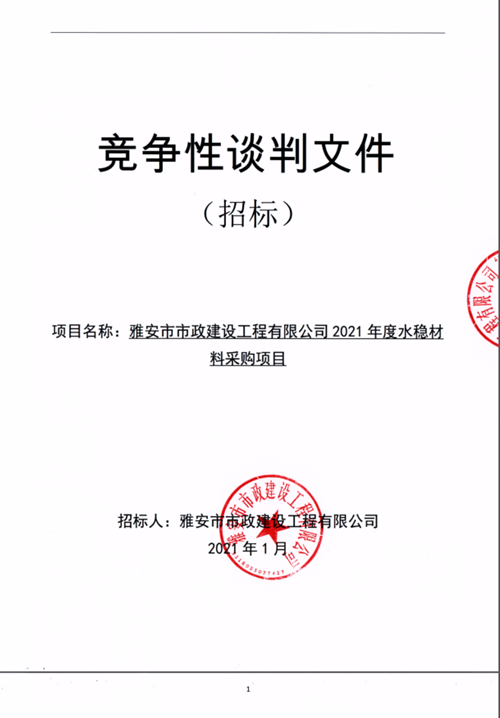 雅安市市政建設(shè)工程有限公司2021年度水穩(wěn)材料采購項目