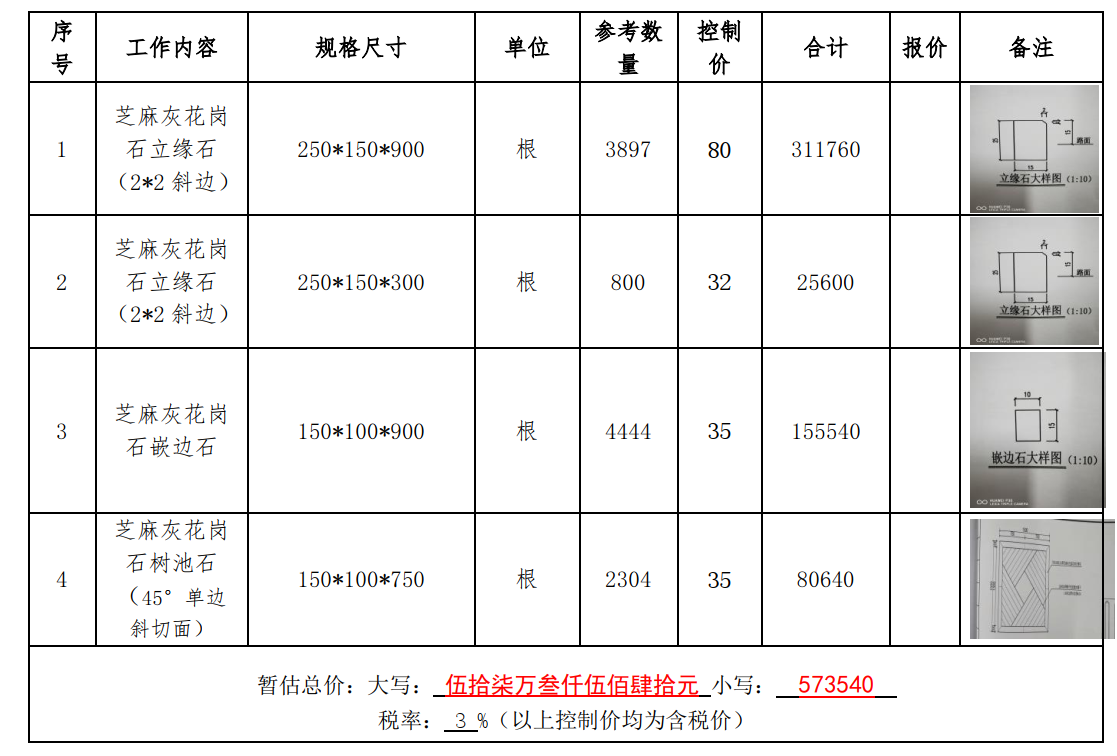 2、報價單位需提供250*150*300芝麻灰花崗石樣品,樣品在開標之前送達。