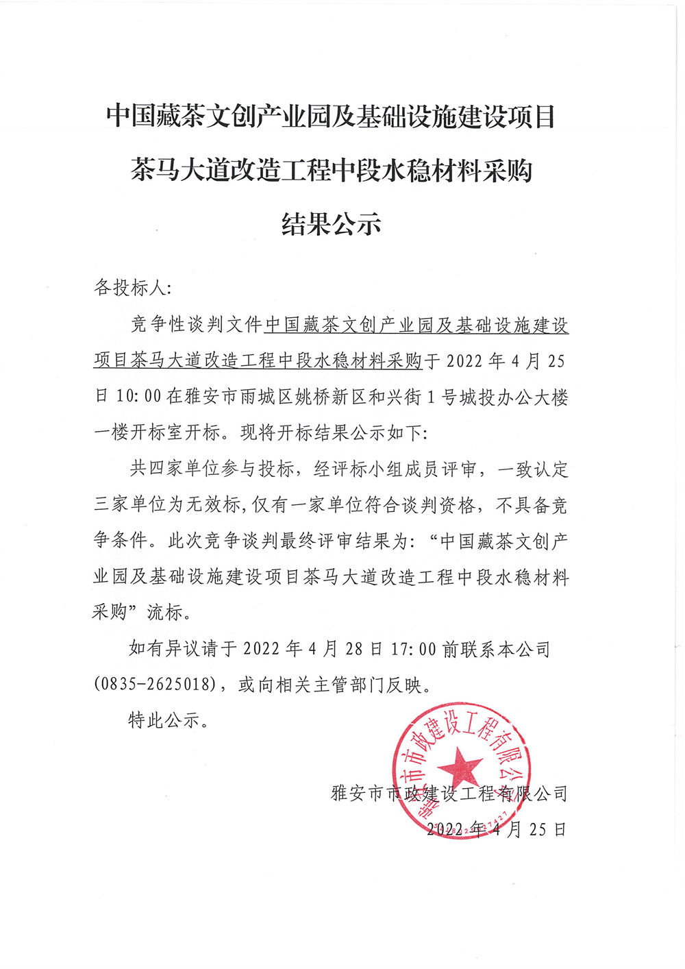 中國藏茶文創(chuàng)產(chǎn)業(yè)園及基礎(chǔ)設(shè)施建設(shè)項目茶馬大道改造工程中段水穩(wěn)材料采購競爭性談判結(jié)果公示