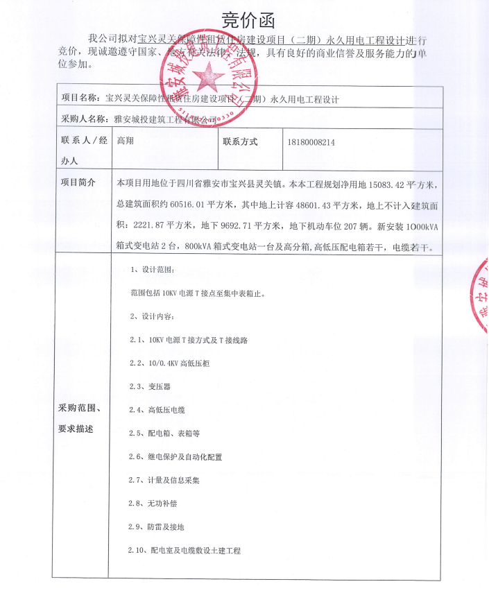 寶興縣靈關(guān)保障性租賃住房建設(shè)項(xiàng)目(二期)永久用電工程設(shè)計競價公告