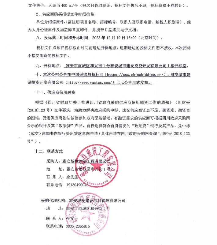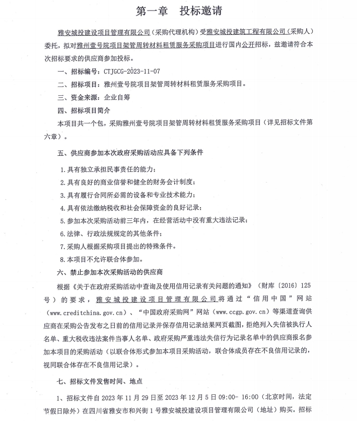 雅州壹號院項目架管周轉(zhuǎn)材料租賃服務采購項目投標邀請公告