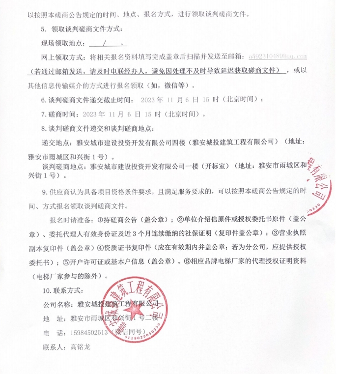寶興縣靈關(guān)保障性租賃住房建設(shè)項(xiàng)目(二期)室內(nèi)電梯采購(gòu)(含安裝)談判磋商公告