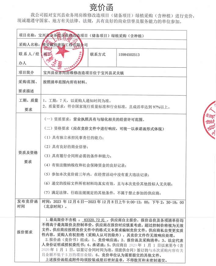 寶興縣業(yè)務(wù)用房維修改造項目(儲備項目)綠植采購(含種植)競價公告