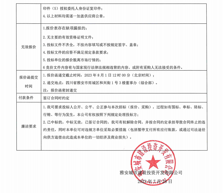 雅安城市建設投資開發(fā)有限公司清潔用品采購項目(第二次)競價公告