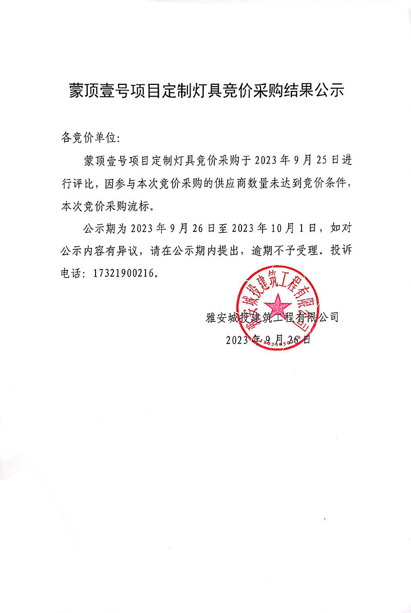 蒙頂壹號(hào)項(xiàng)目定制燈具競(jìng)價(jià)采購(gòu)結(jié)果公示