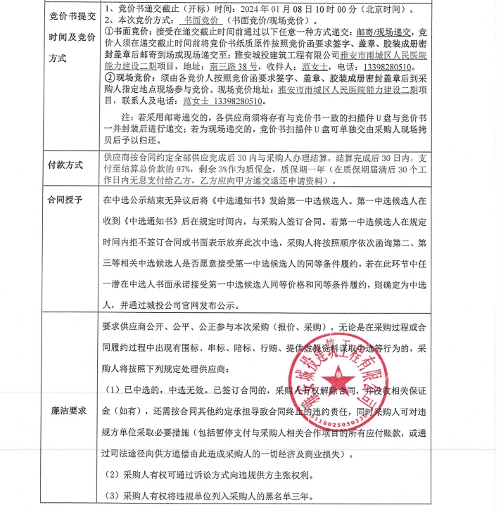 雅安市雨城區(qū)人民醫(yī)院能力建設(shè)二期項(xiàng)目警務(wù)室、崗?fù)げ少徃們r(jià)公告