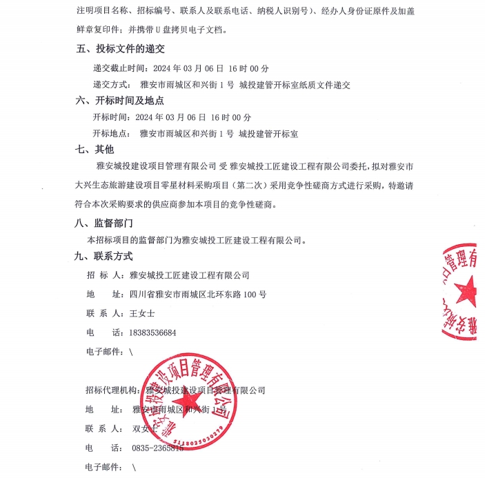 雅安市大興生態(tài)旅游建設(shè)項(xiàng)目零星材料采購項(xiàng)目(第二次)公告