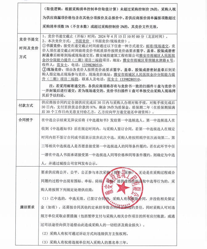 雅安市雨城區(qū)人民醫(yī)院金沙分院能力提升(二期)項(xiàng)目二標(biāo)段衛(wèi)生間隔斷采購(gòu)競(jìng)價(jià)公告