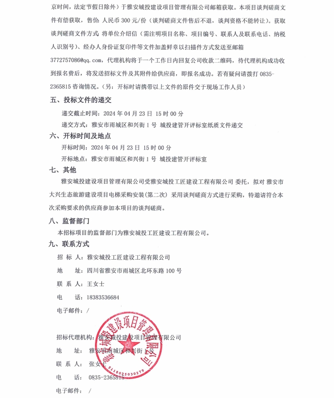 雅安市大興生態(tài)旅游建設(shè)項目電梯采購安裝(第二次)公告