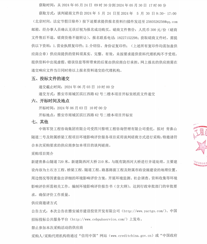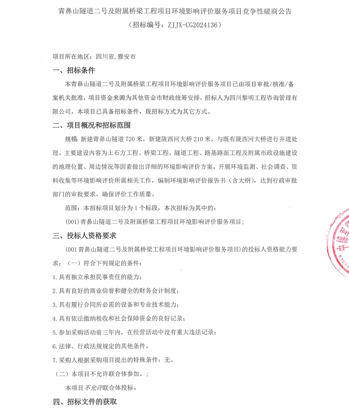 青鼻山隧道二號(hào)及附屬橋梁工程項(xiàng)目環(huán)境影響評價(jià)服務(wù)項(xiàng)目競爭性磋商公告