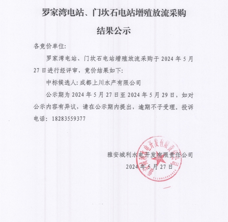 羅家灣電站、門(mén)坎石電站增殖放流采購(gòu)結(jié)果公示