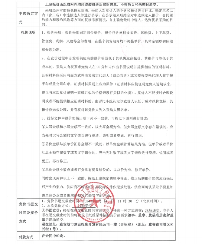 競價(jià)函-材料采購-安居房公區(qū)裝修(第二次)