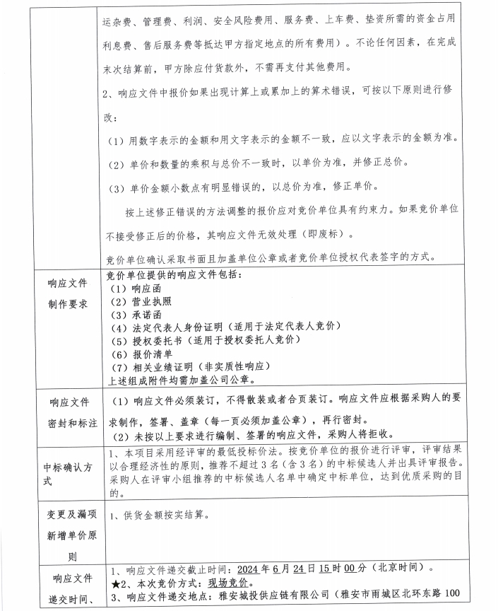 雅安城投供應(yīng)鏈有限公司地鋪石采購競價公告